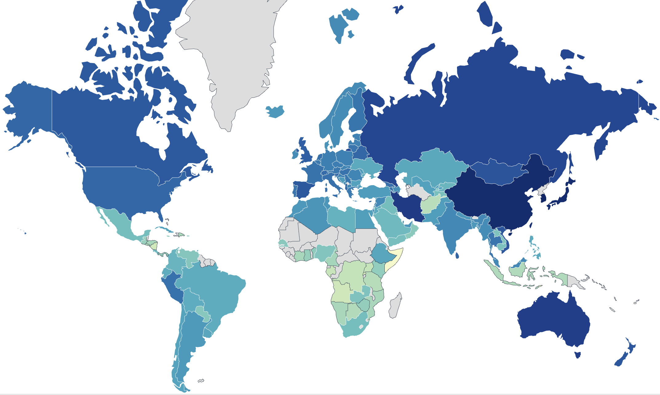 Secara keseluruhan, negara dari Asia dan Eropah menguasai carta tertinggi, dengan kehadiran negara seperti Iran, Singapura, Rusia, Mongolia, Armenia, Australia dan Sepanyol dalam kelompok teratas.