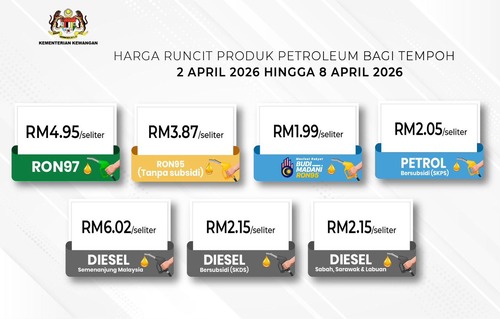 Kementerian Kewangan Malaysia (MoF) mengumumkan pelarasan harga runcit produk petroleum bagi tempoh 2 April hingga 8 April 2026, susulan tekanan berterusan daripada krisis tenaga global yang masih belum reda.